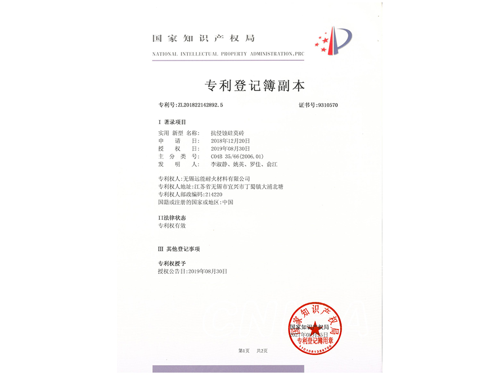 专利登记-抗侵蚀硅莫砖