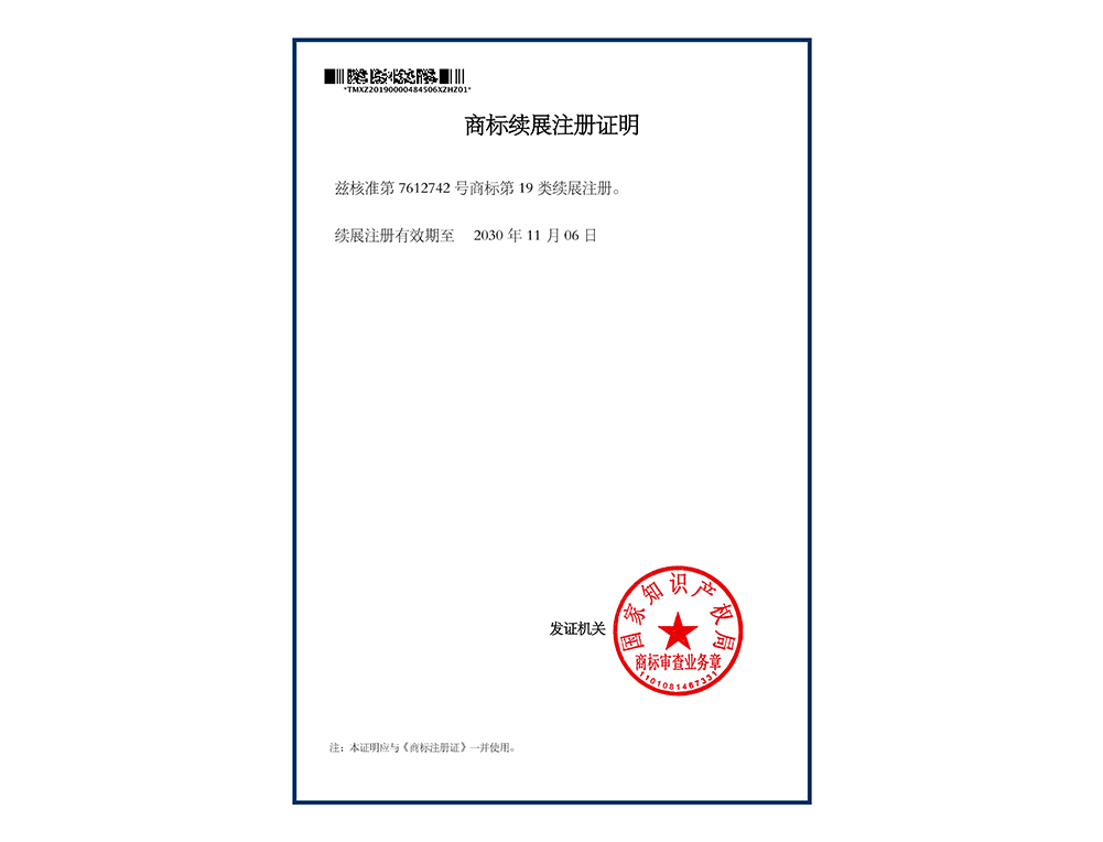 商标续展注册证明
